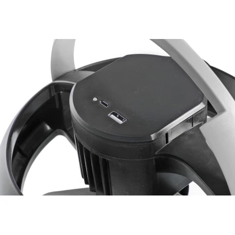 Questa pratica combinazione di luce/ventilatore ricaricabile fornisce simultaneamente una luce LED brillante e la brezza fresca di un potente ventilatore a quattro pale. Il design funzionale permette il fissaggio del ventilatore sia al tetto che alle pareti delle tende mediante la sua maniglia pieghevole o il suo gancio.